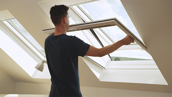 Da es sich beim Insektenschutz fürs Dachfenster um ein Rollo handelt, kann das Fenster weiterhin geöffnet werden, ohne dass der Schutz vor Insekten und Fliegen verloren geht. So lässt sich das Fenster im Sommer weiterhin öffnen, um angestaute Wärme am Abend auszulüften.