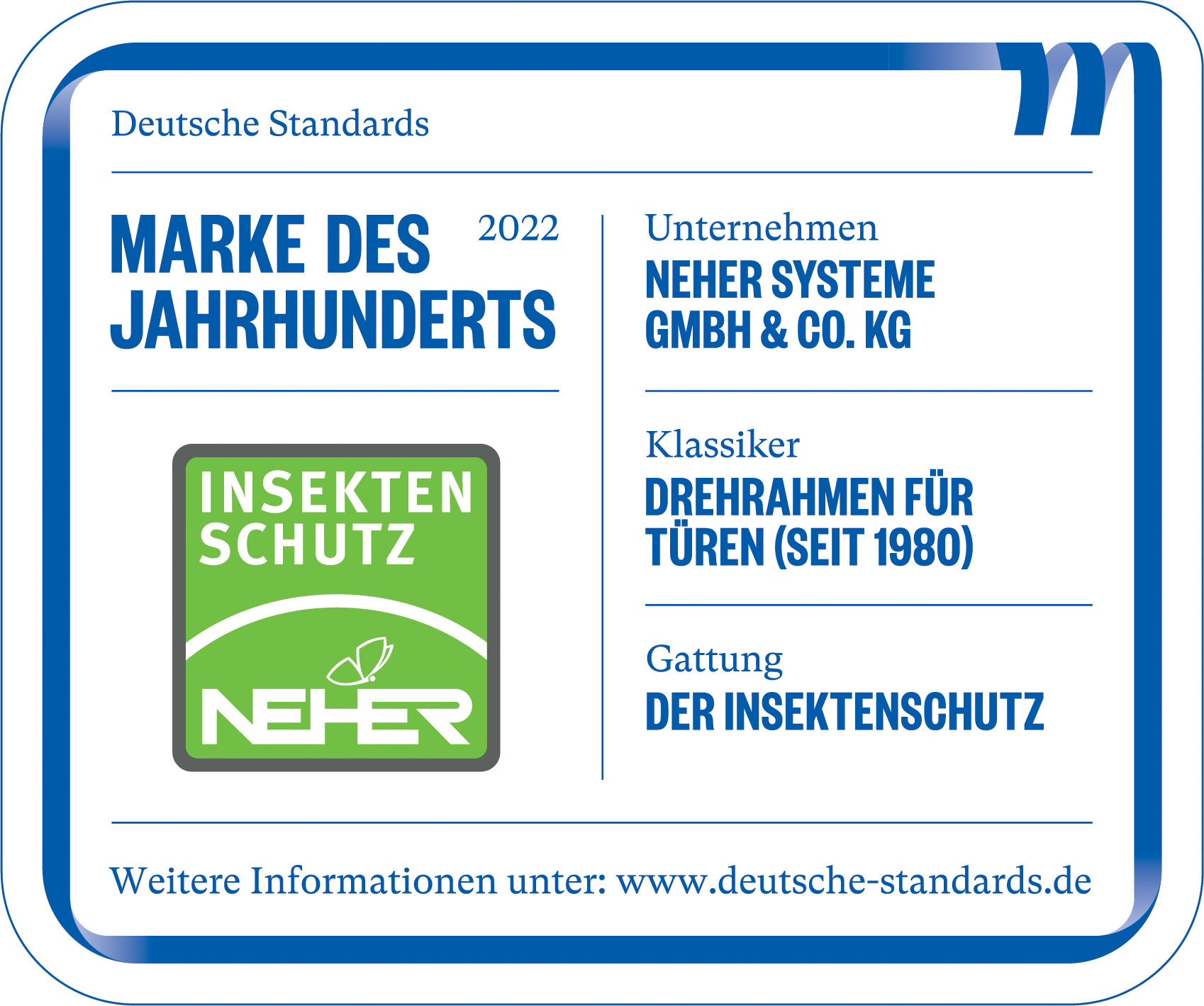 Auch in diesem Jahr wurde Neher – der Insektenschutz – wieder in den exklusiven Kreis dieser deutschen Marken gewählt, wie z.B. auch Duden – das Wörterbuch, oder Inbus – der Innensechskantschlüssel.